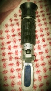 5. Looked directly through the Refractometer in the direction of the light source to focus the eyepiece and clearly see the graduations